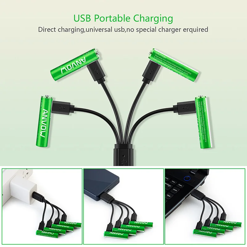 Batería de iones de litio recargable por Usb, Tamaño AAA. Soporta más de 1000 recargas. Pack x 4 + Cable cargador